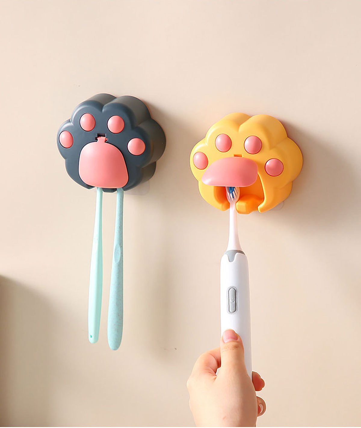 創(chuàng)意免打孔貓爪牙刷架(配無痕膠)