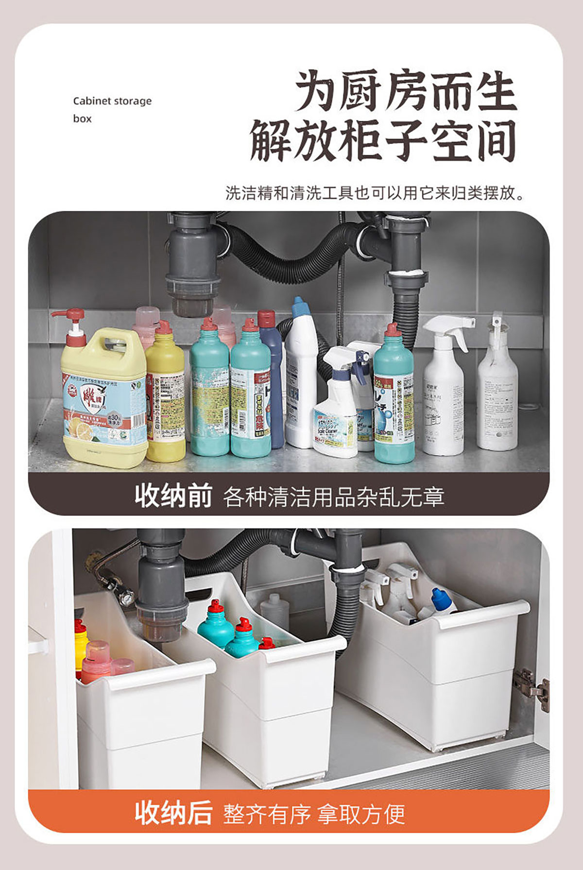 櫥柜收納筐(透明/實(shí)色 小號(hào)/大號(hào))