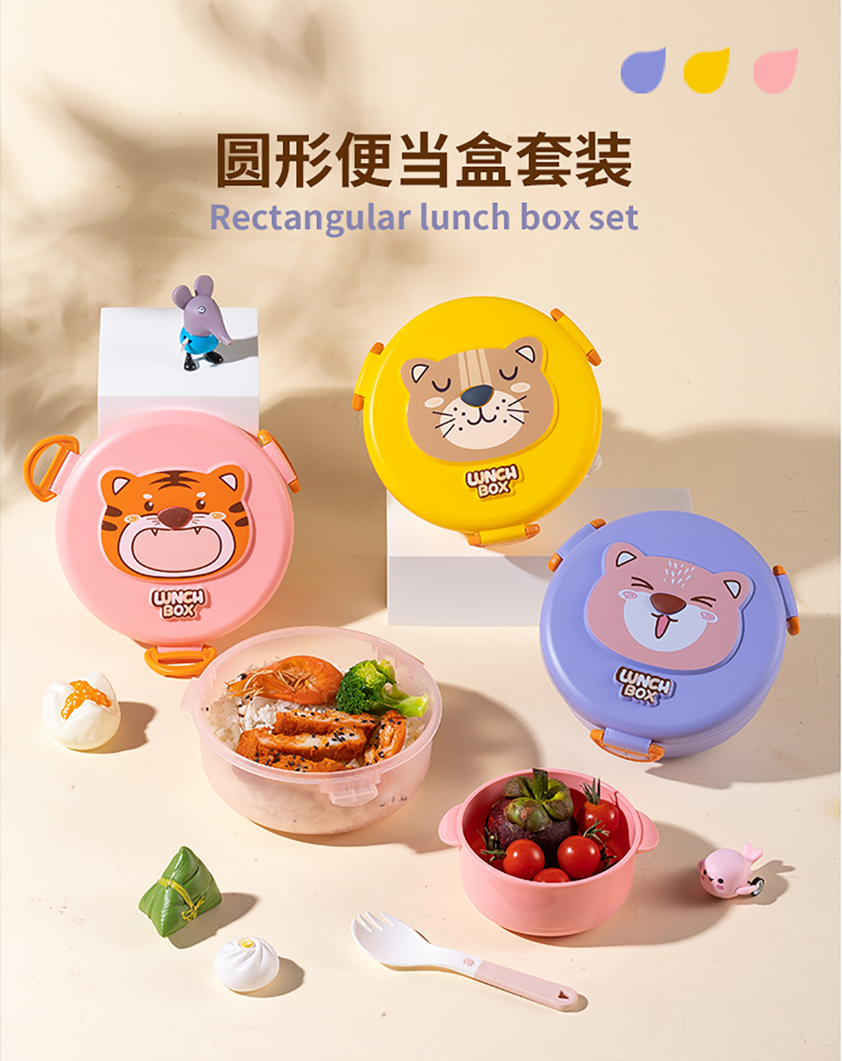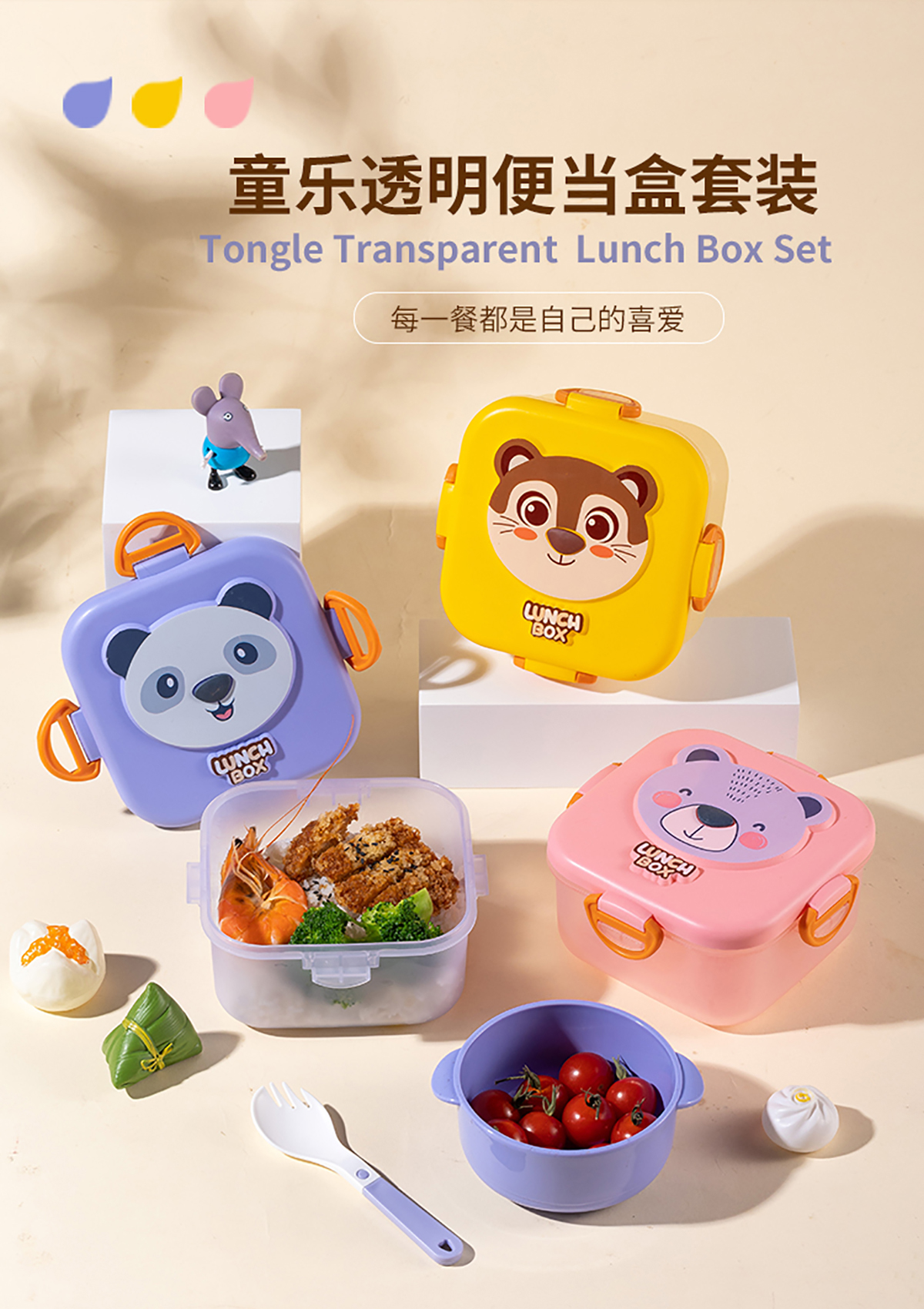童樂透明長方形/圓形/正方形便當盒套裝