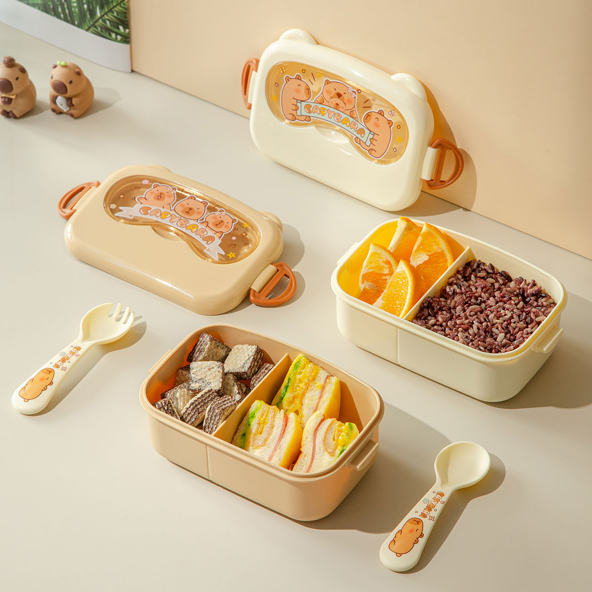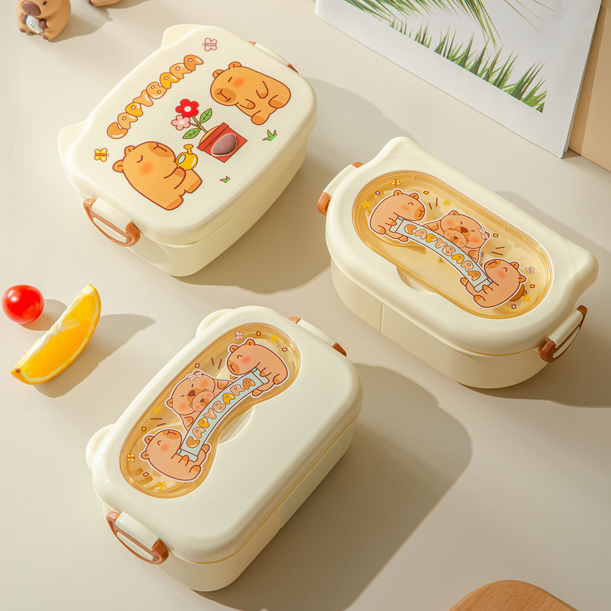 魔法豚長方形/萌鏡豚/趣照豚分格便當盒