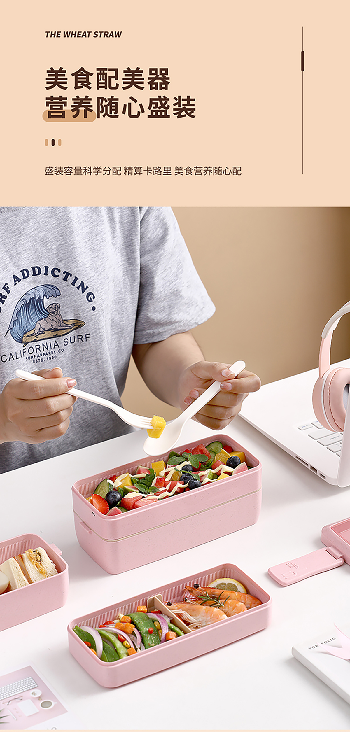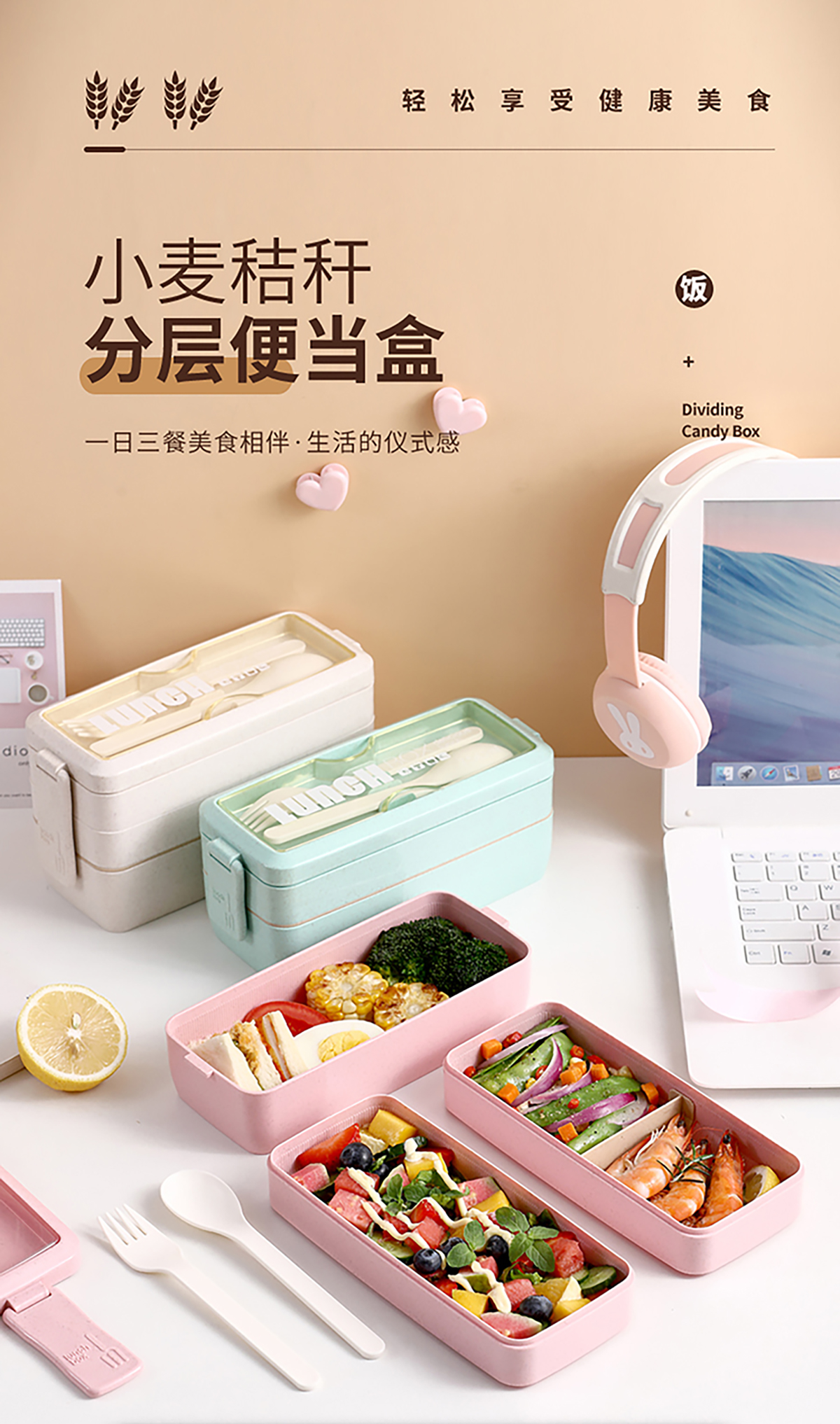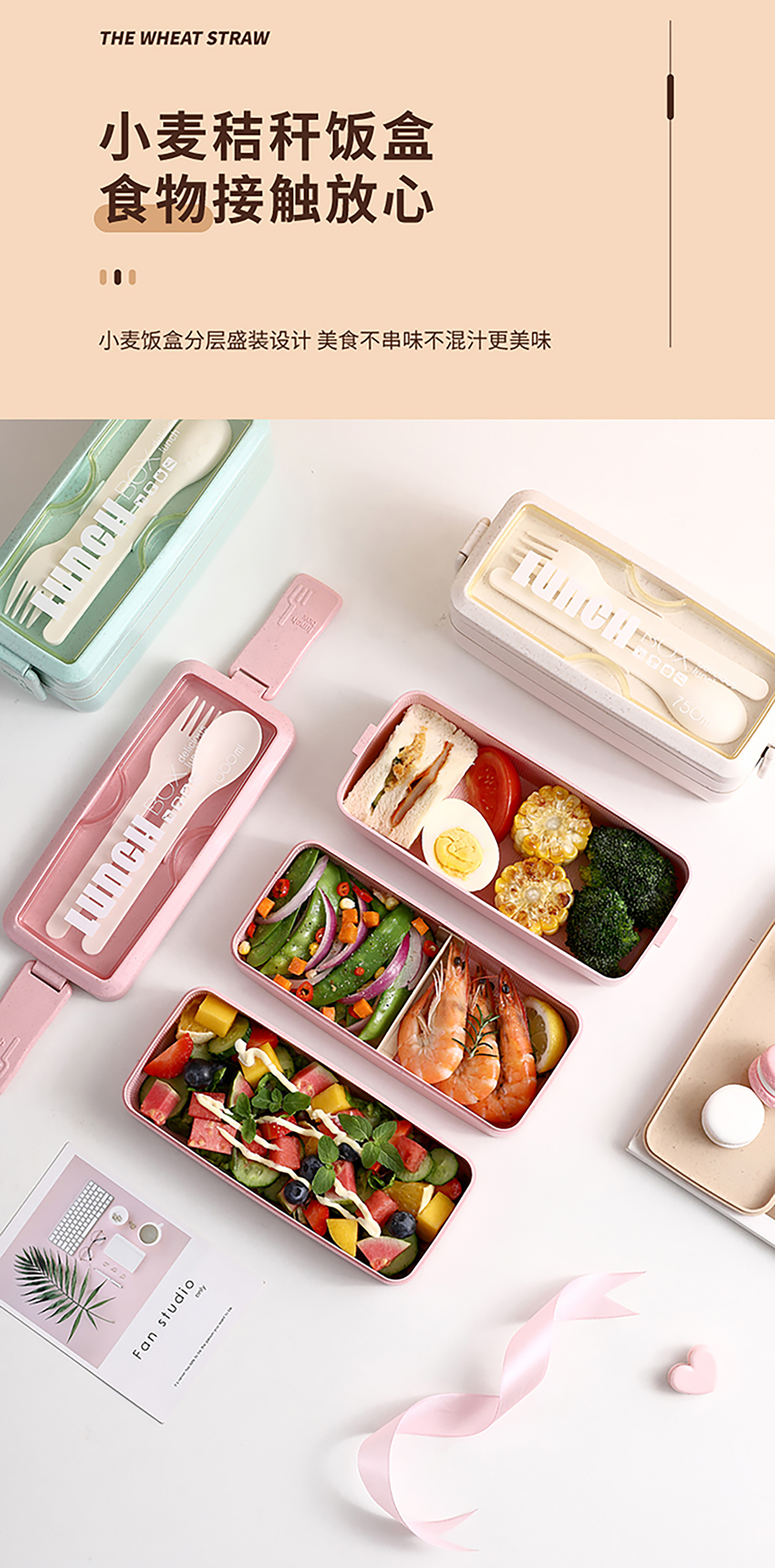 麥秸透明蓋雙層750ml/三層1000ml飯盒