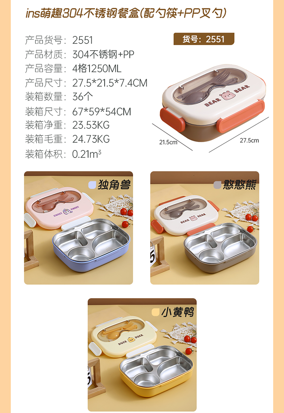 ins萌趣304不銹鋼餐盒系列