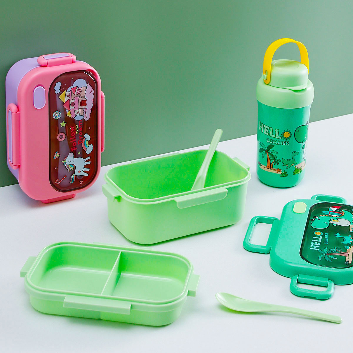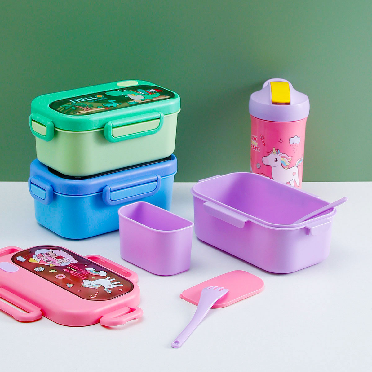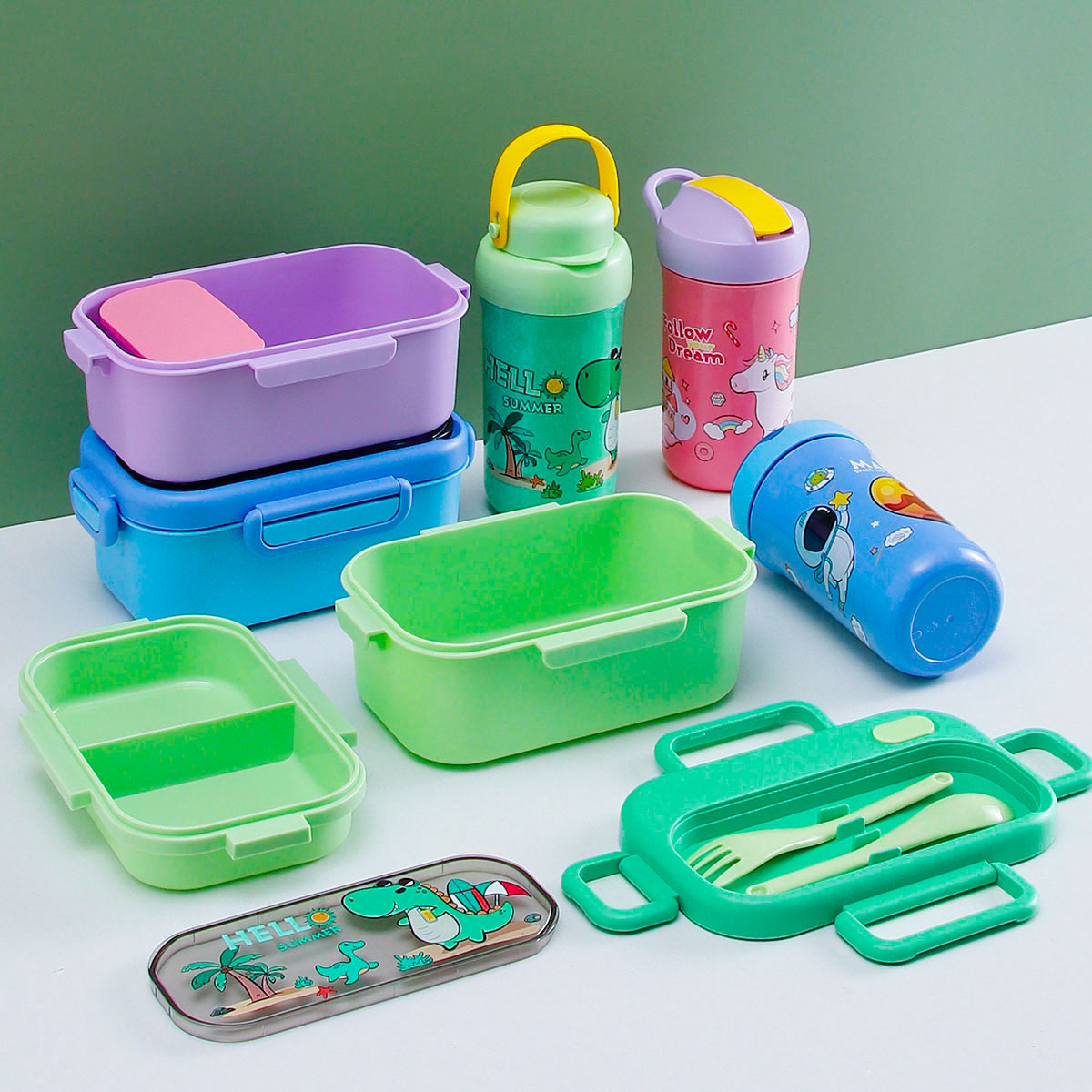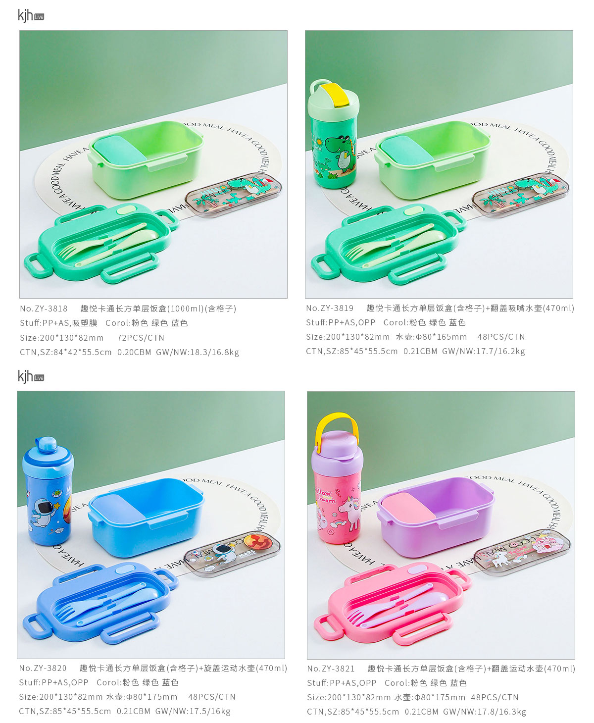 趣悅卡通長方單層(含格子)/雙層飯盒+翻蓋吸嘴/旋蓋運動/翻蓋運動水壺