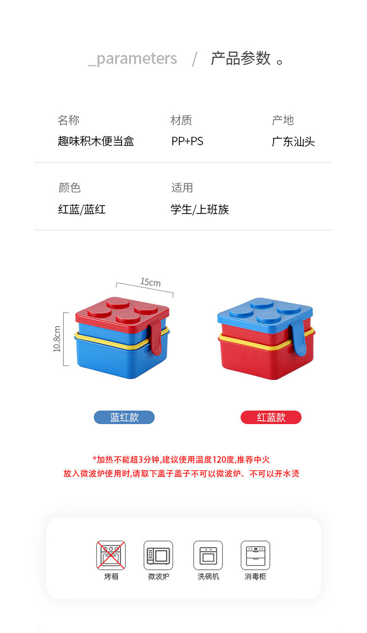 積木雙層方形飯盒1500ml