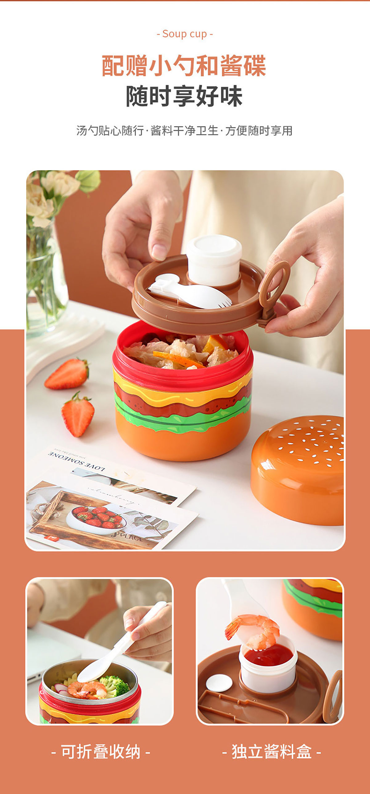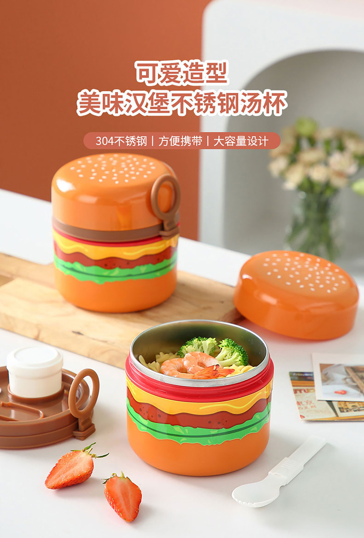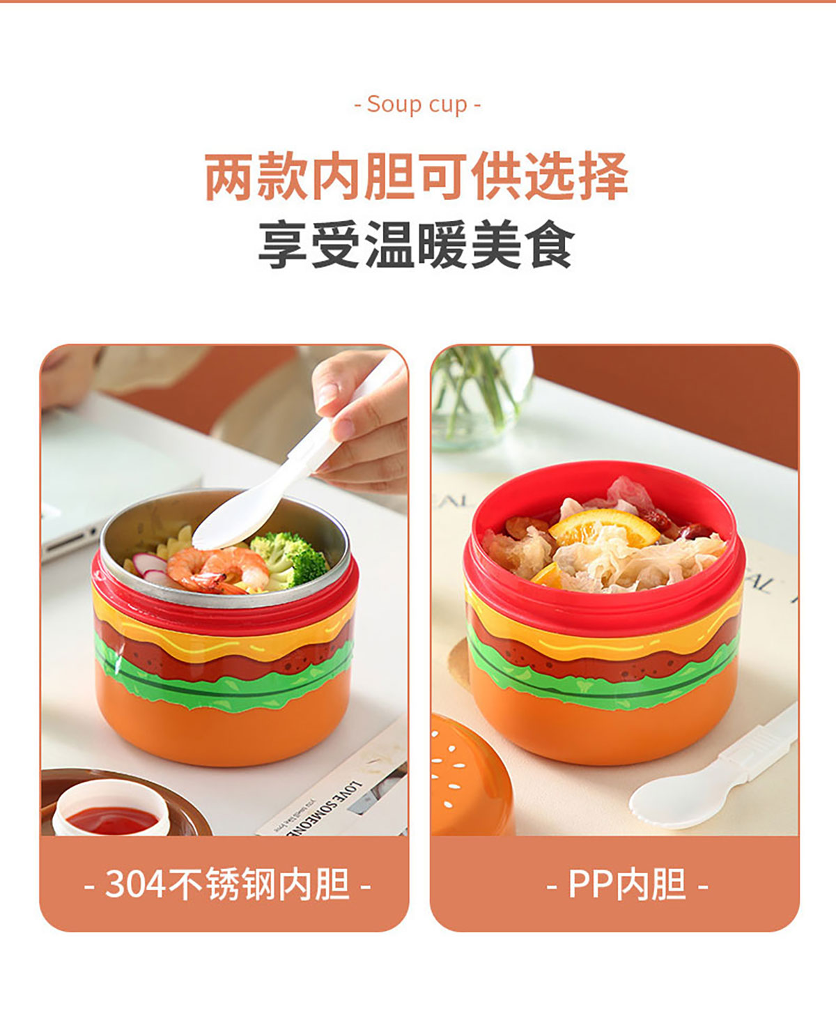 創(chuàng)意漢堡輕食碗矮款350ml/650ml(PP款/不銹鋼款)