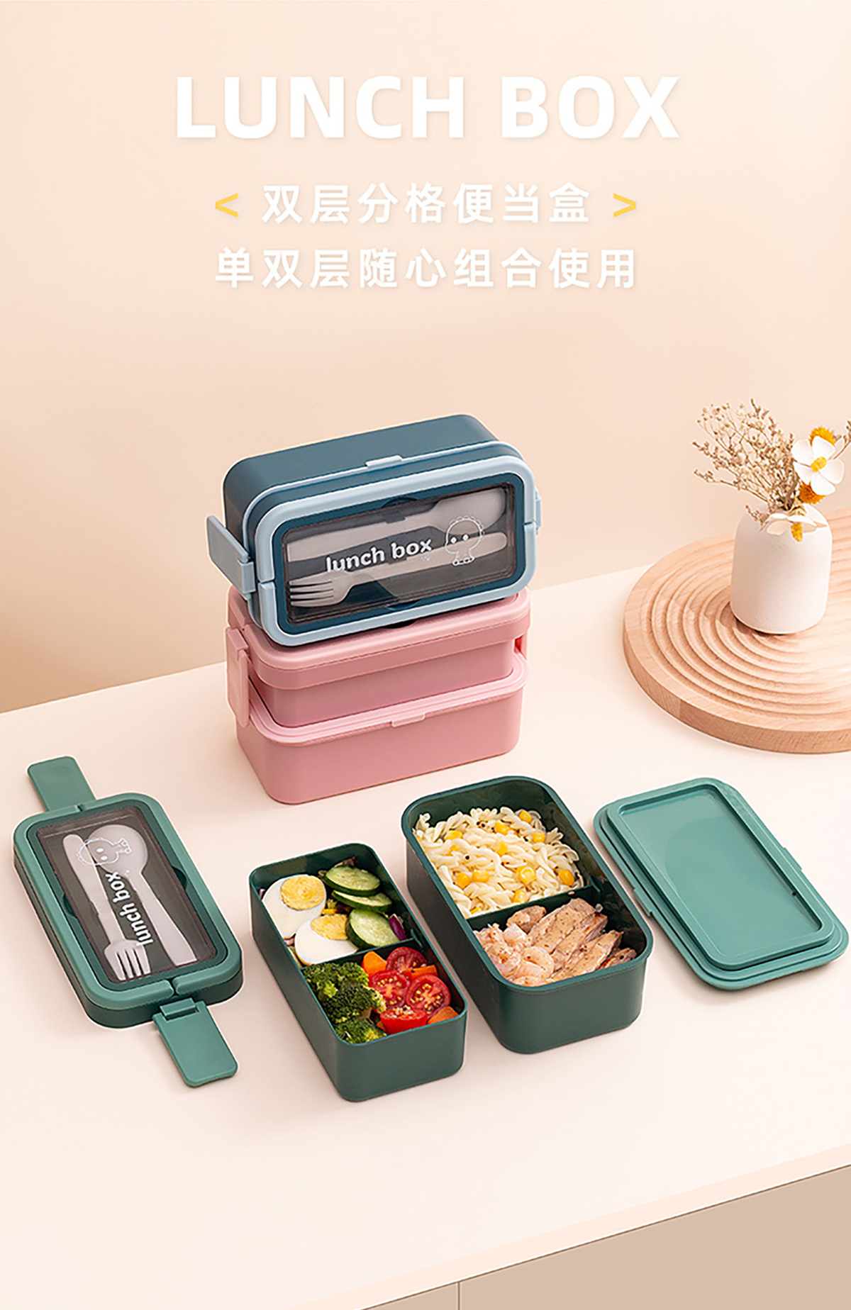 創(chuàng)意雙層/單層可收納手提飯盒
