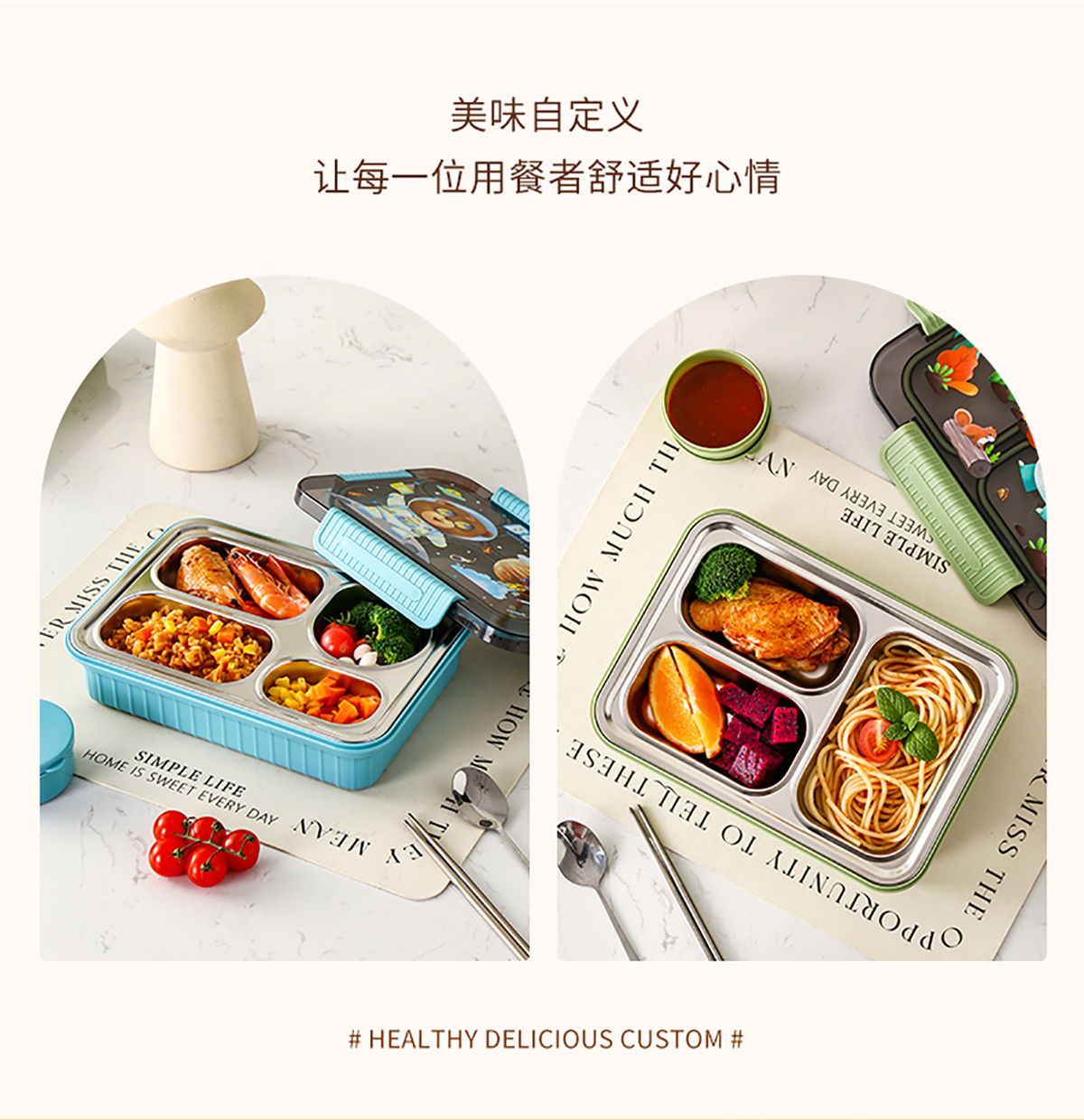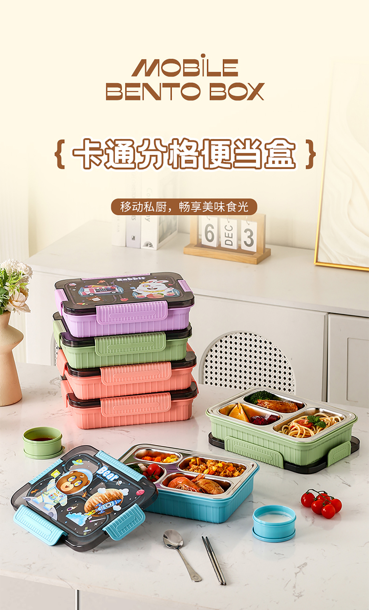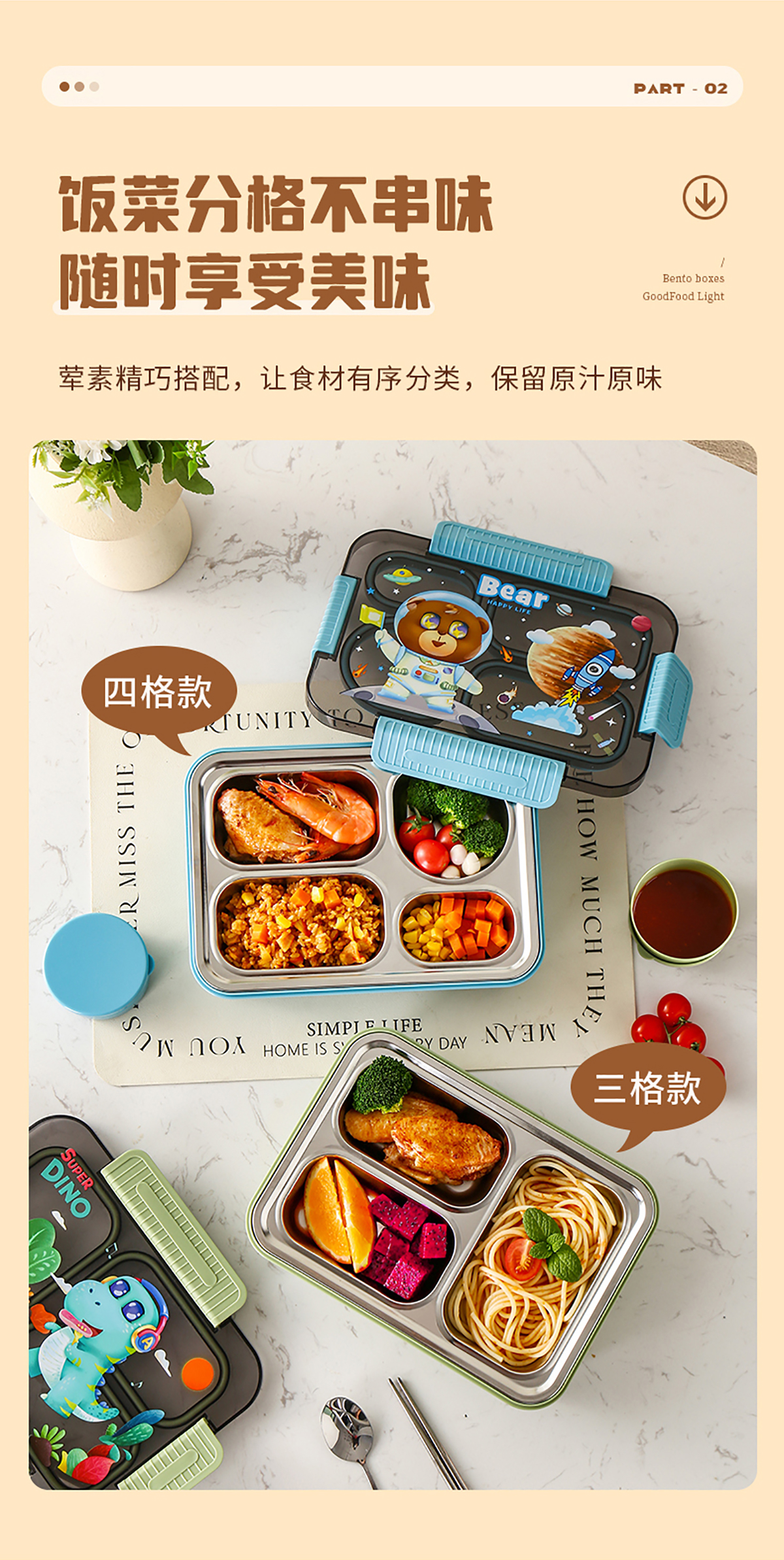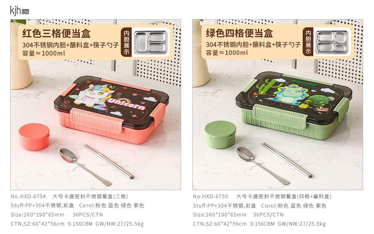 大號(hào)卡通密封不銹鋼餐盒(三格/四格+醬料盒)