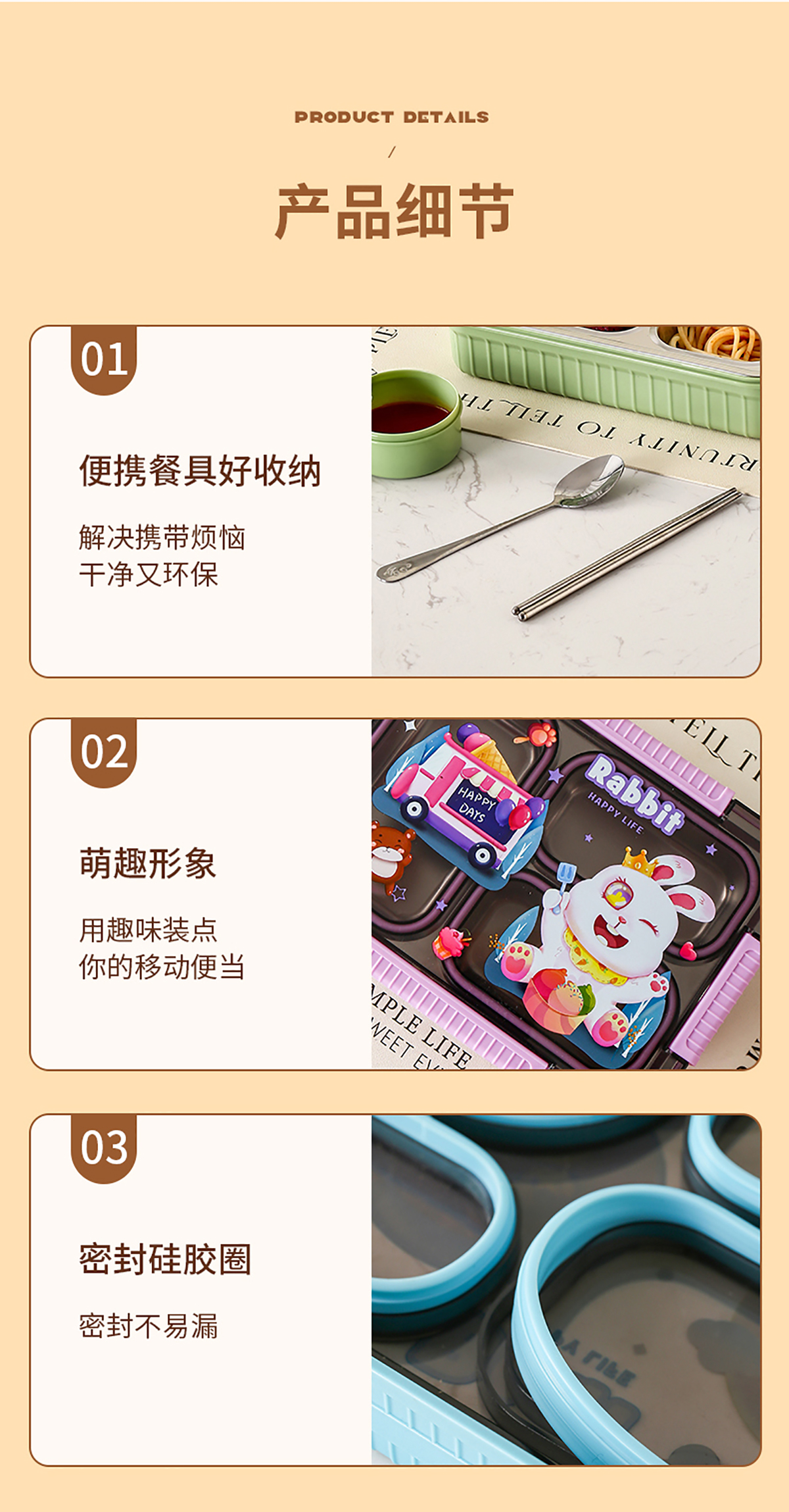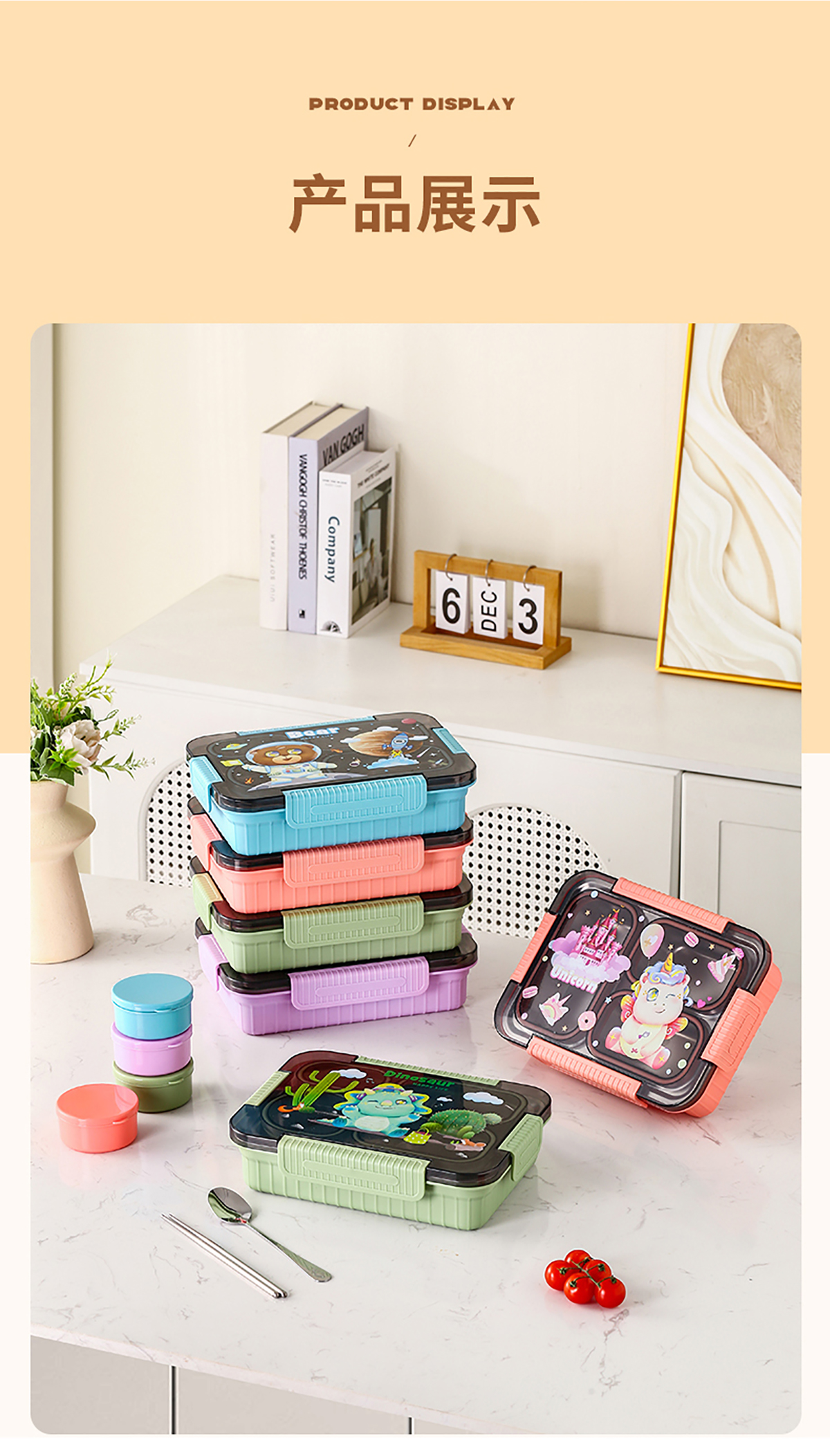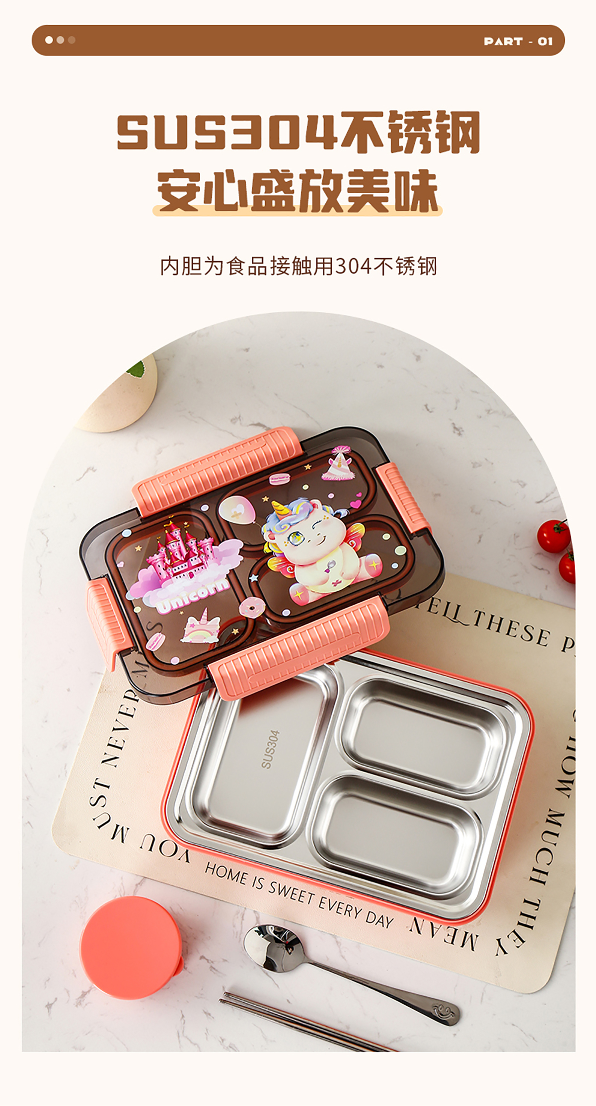 大號(hào)卡通密封不銹鋼餐盒(三格/四格+醬料盒)