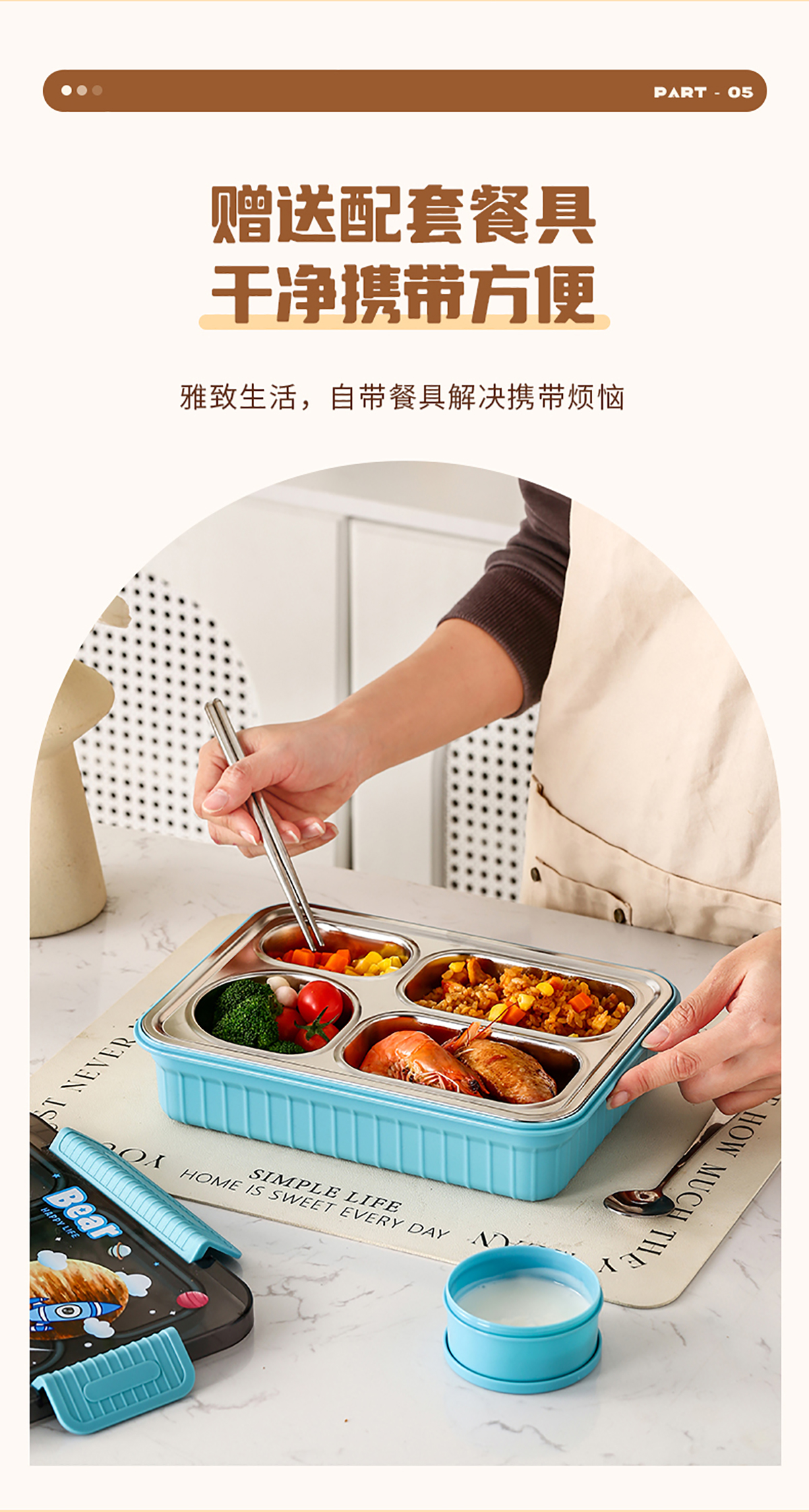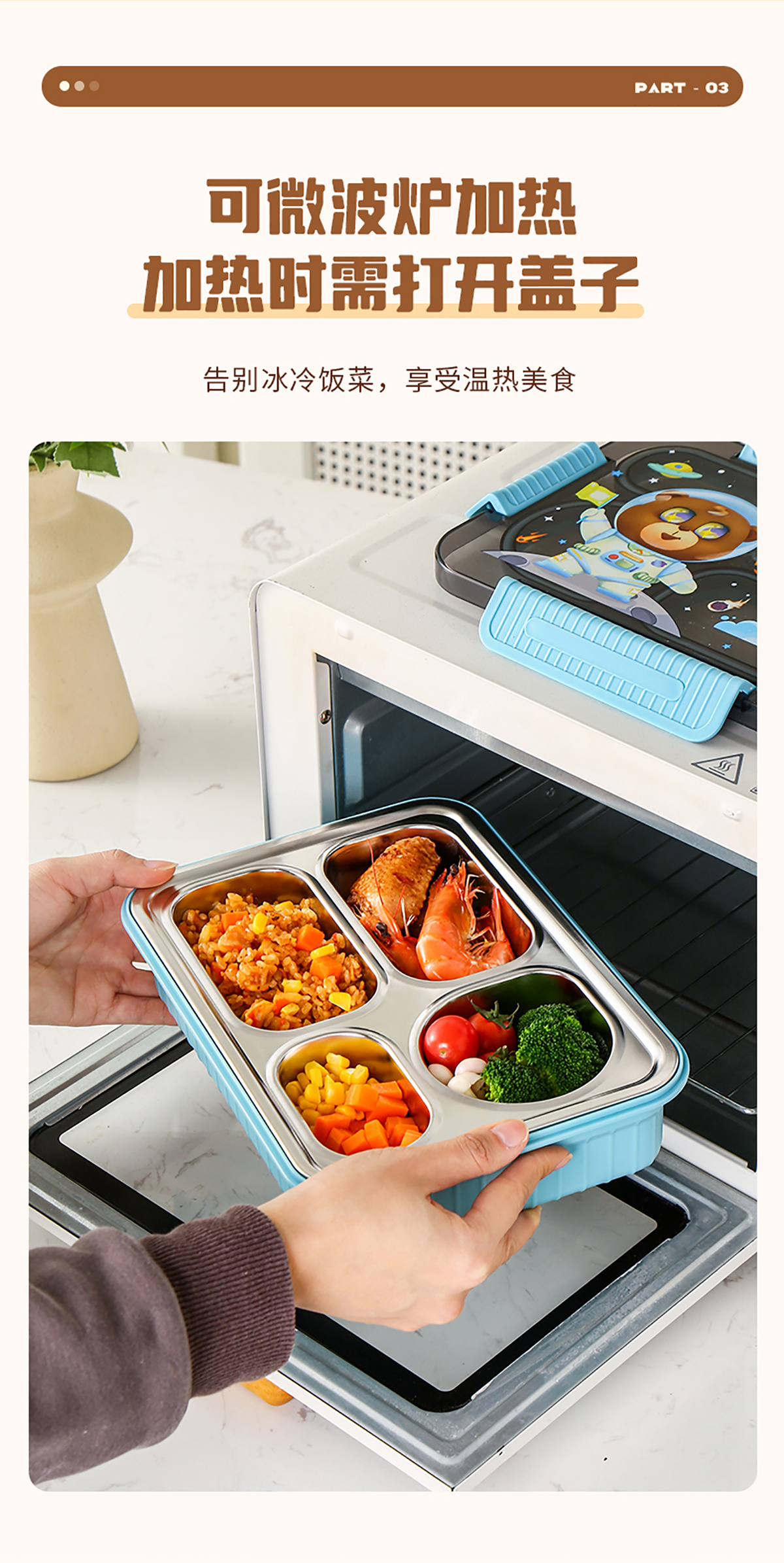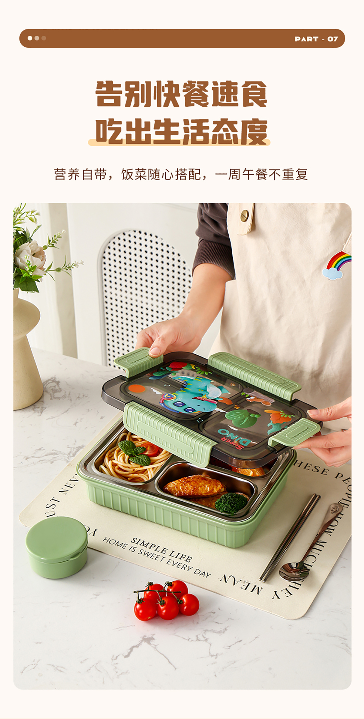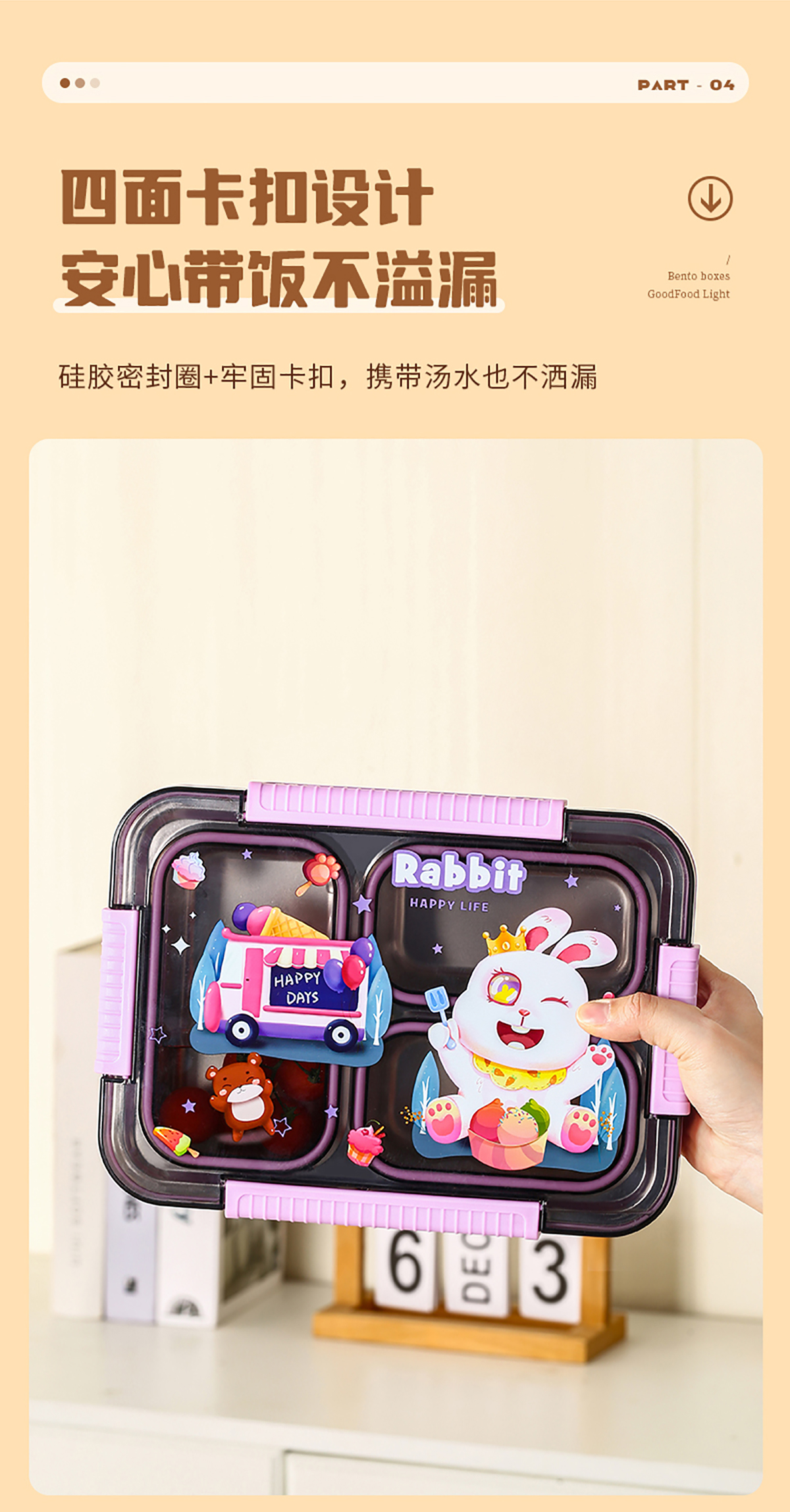 大號(hào)卡通密封不銹鋼餐盒(三格/四格+醬料盒)