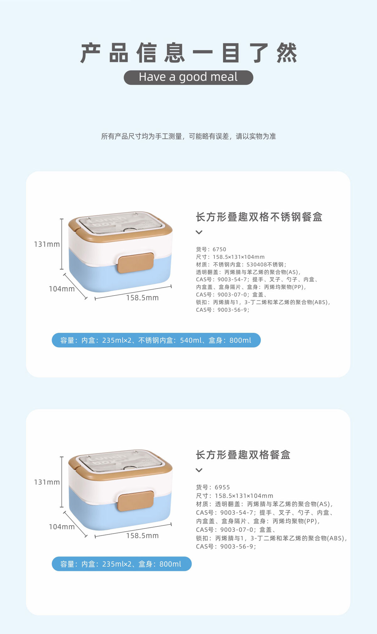 Size: HM-6750(不銹鋼款):159*131*104mm/不銹鋼:540ml/盒身:800ml/內(nèi)盒:235*2ml