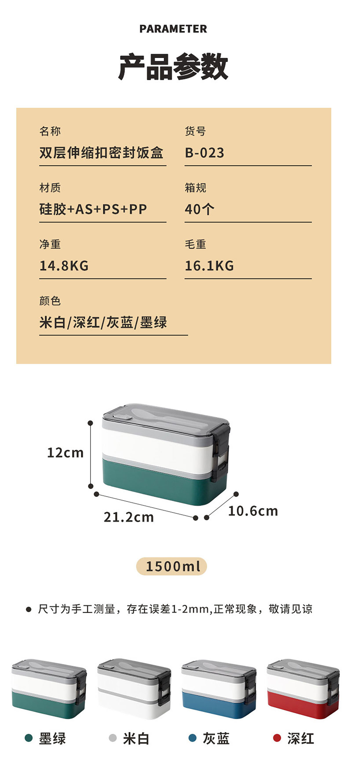 Size: 212*106*120mm/1600ml