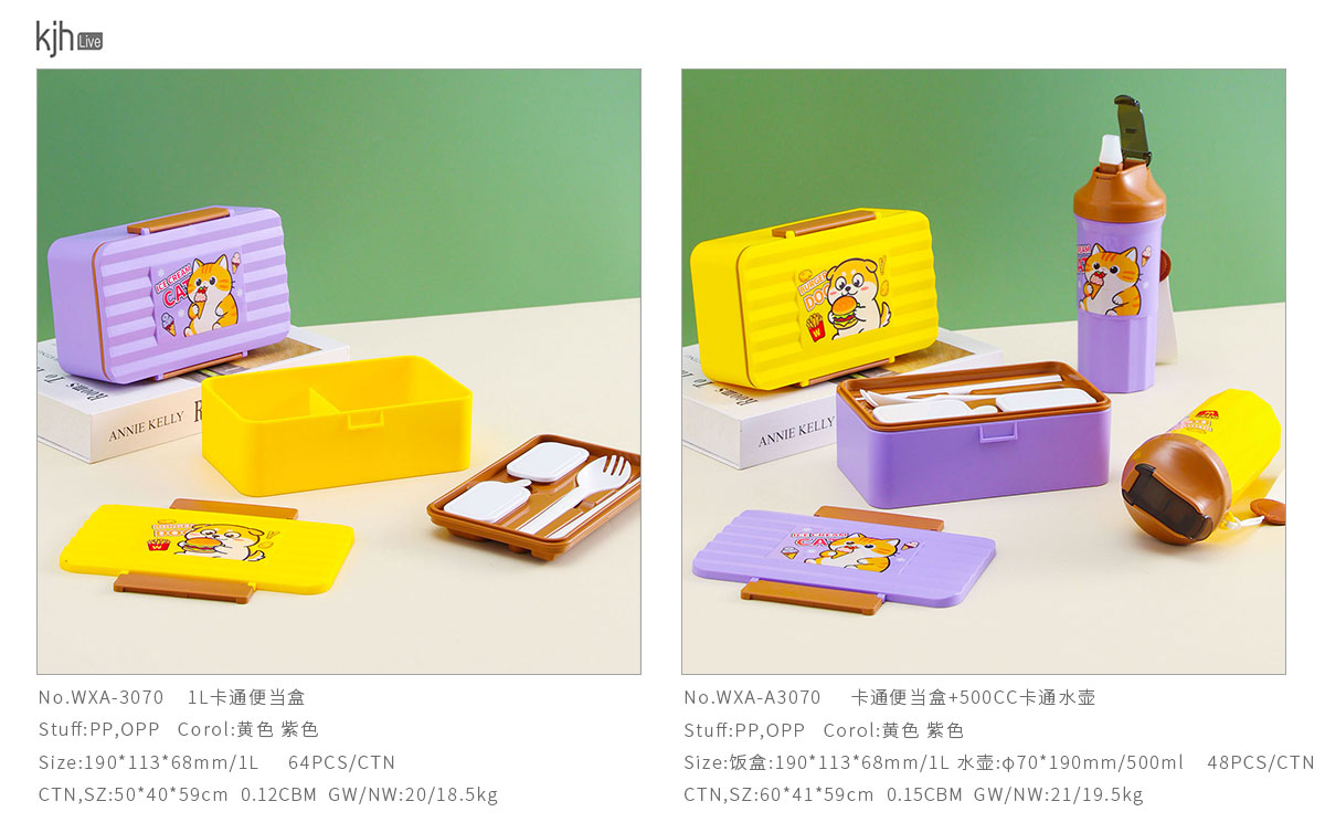 WXA-A3070:飯盒:190*113*68mm/1L 水壺:直徑70*190mm/500ml