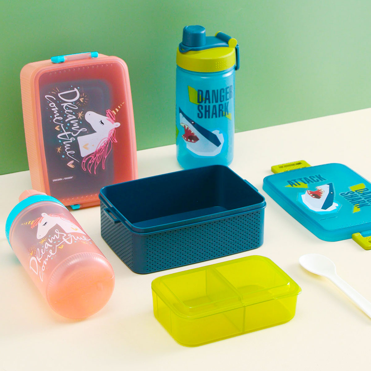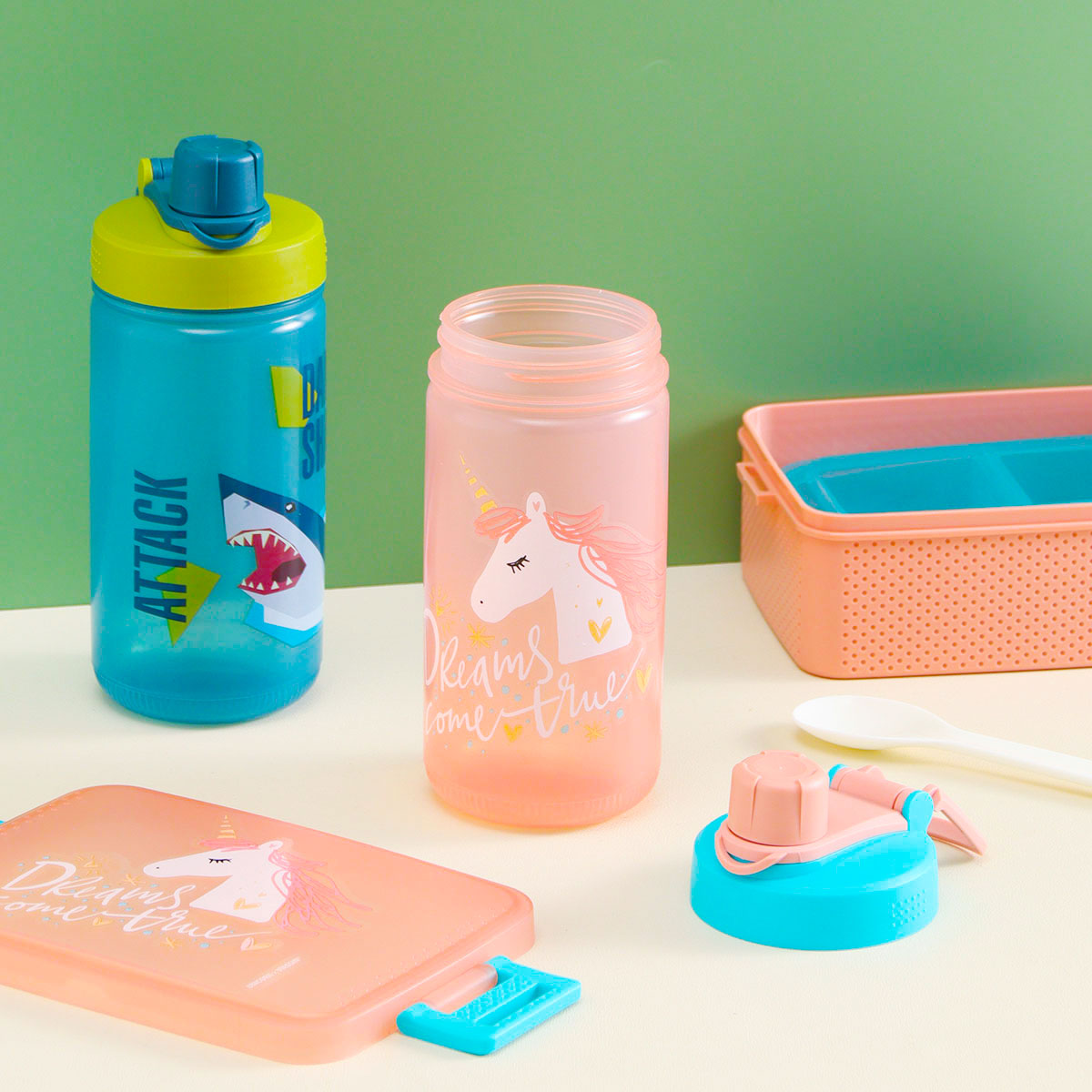 童彩3格飯盒+運動水壺套裝(含內(nèi)盒800ml+500ml)