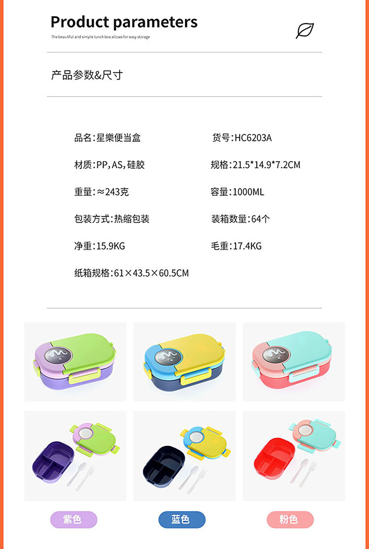 Size: SWY-HC6203A(三格PP款):215*149*72mm/1000ml