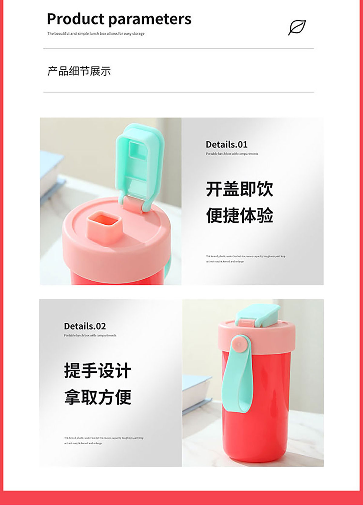 SWY-T202(套裝款):飯盒:215*149*72mm/1000ml 水壺:直徑82*高161mm/480ml