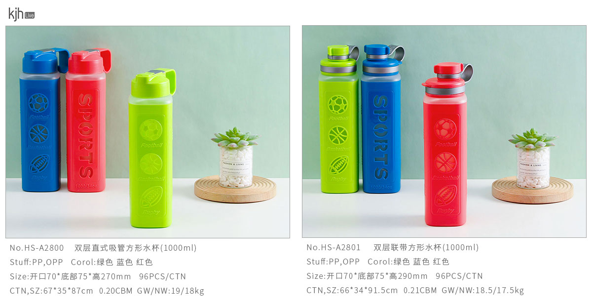 雙層直式吸管/聯(lián)帶方形水杯(1000ml)